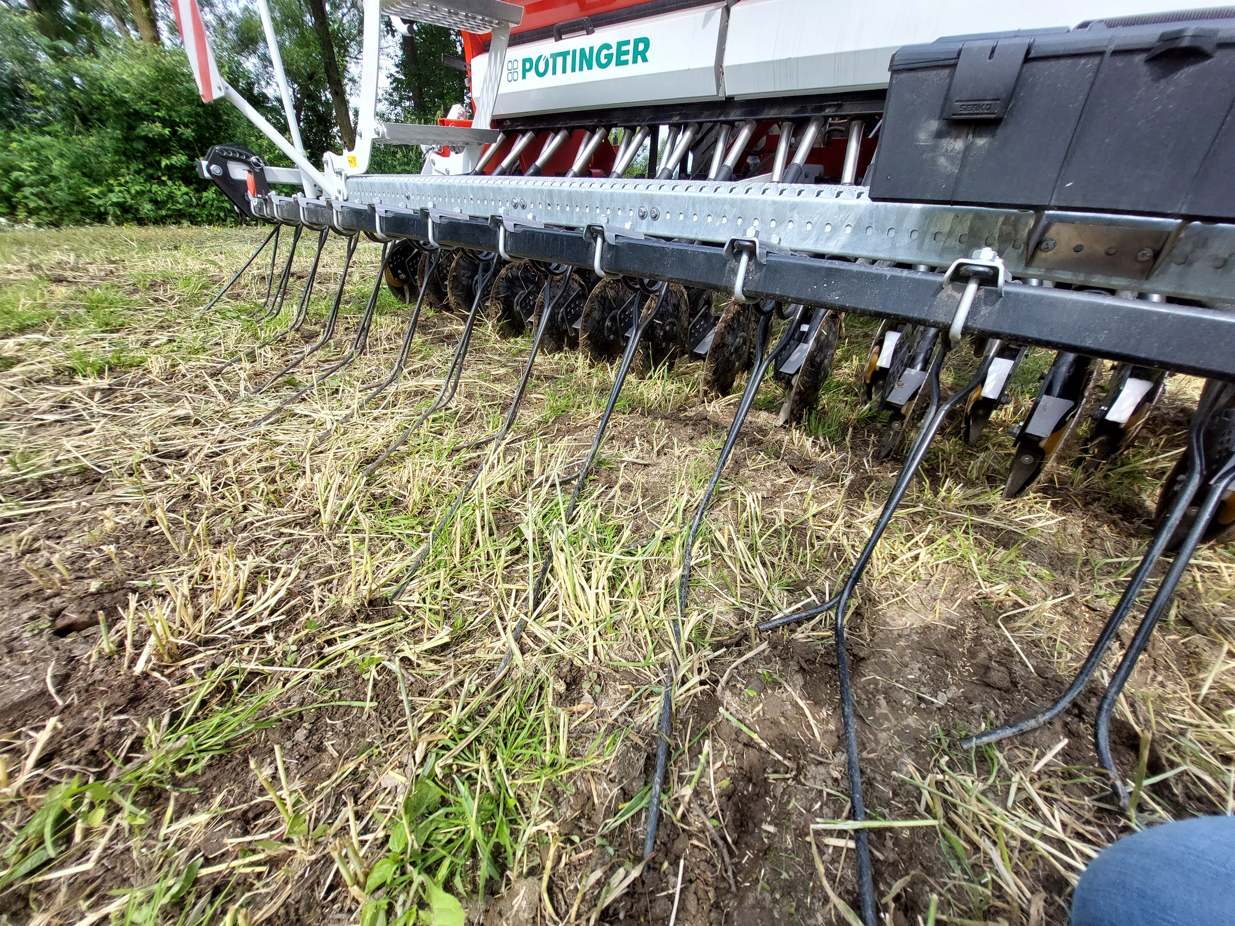 Setev varovalnih pasov lahko izvedete s sejalnicami za direktno setev, s sejalnicami priključenimi na stroje za plitvo obdelavo tal, v prihodnosti pa tudi iz zraka s pomočjo dronov. Seveda je pomembno, da semena posejete v skladu s priporočeno količino na enoto površine (v kg/ha), zato upoštevajte priporočene setvene norme in specifične poljske pogoje (npr. suha, vlažna tla), da bo vložen trud priprave in setve poplačan z ozelenjenim varovalnim pasom.