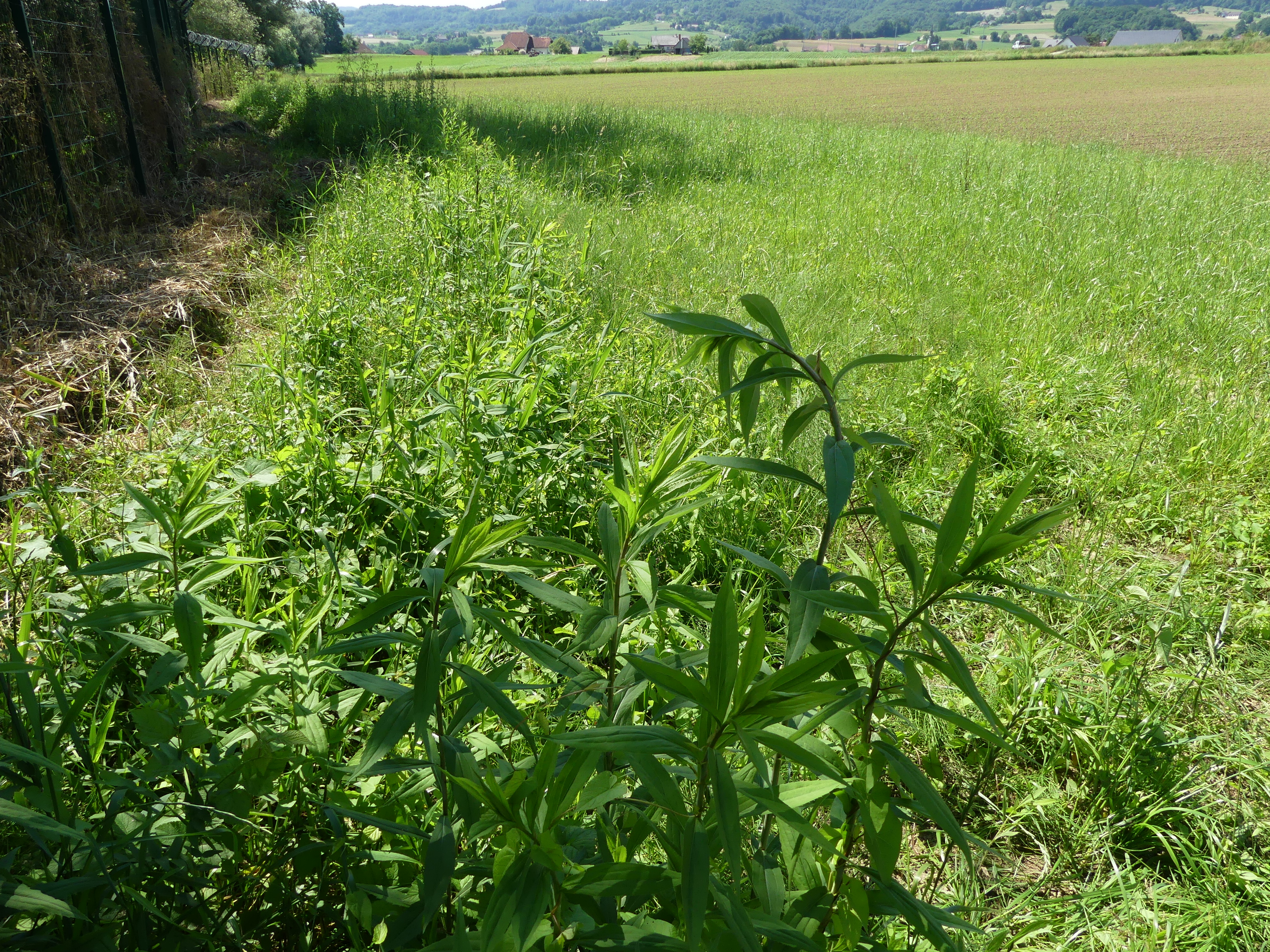 V varovalnem pasu, posejanem konec marca '23, so junija že visoke rastline zlate rozge. Zato POZOR: v varovalnem pasu bo potrebno poskrbeti za preprečevanje širjenja invazivnih rastlin!
