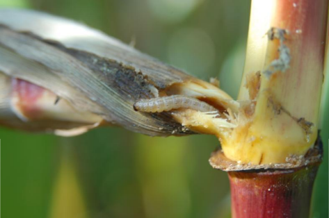Slika 1: Gosenica koruzne vešče v strženu koruze (foto: M. Rak Cizej)